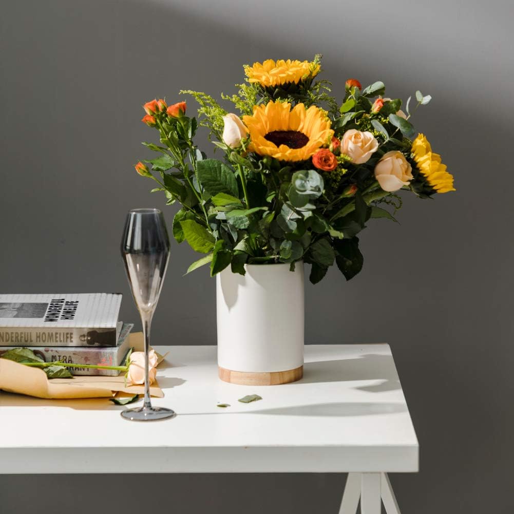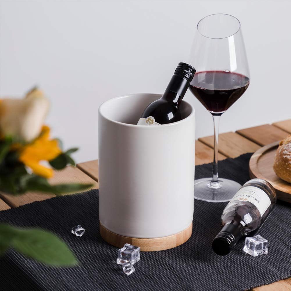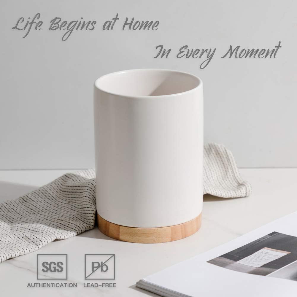 Sweejar Kitchen Utensil Holder with Wooden Bottom, 6.7" Ceramic Utensil Crock to Hold Spatulas for Cooking Countertop, Housewarming, Wedding, Birthday Gift (White)