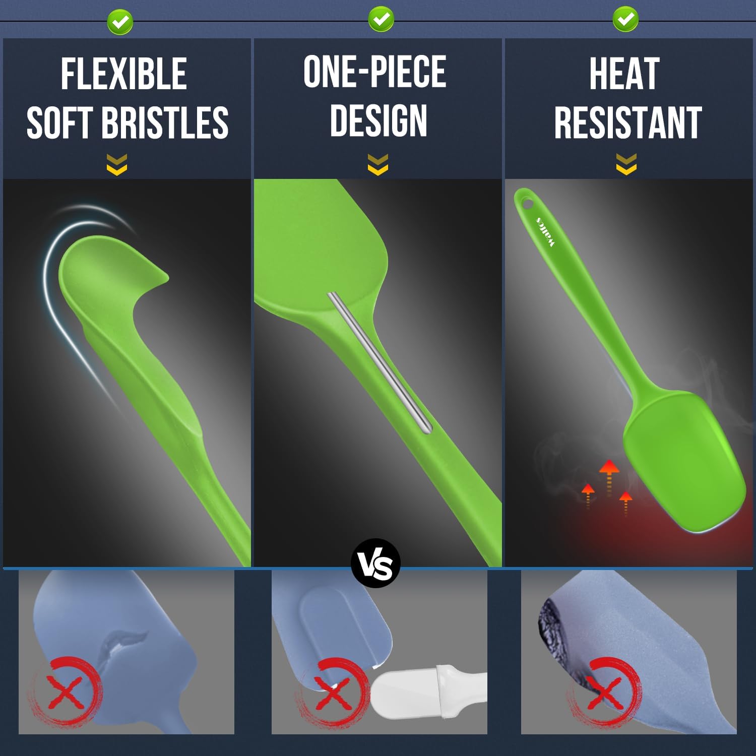 - One-Piece Design:Make sure that your silicone spatulas don't trap food particles, clean up easy and keep your food safe. Ergonomic handle is very easy to grip ! Each spatula has a perfect angle and a soft silicone surface, which is very easy to scrape the food in the bowl