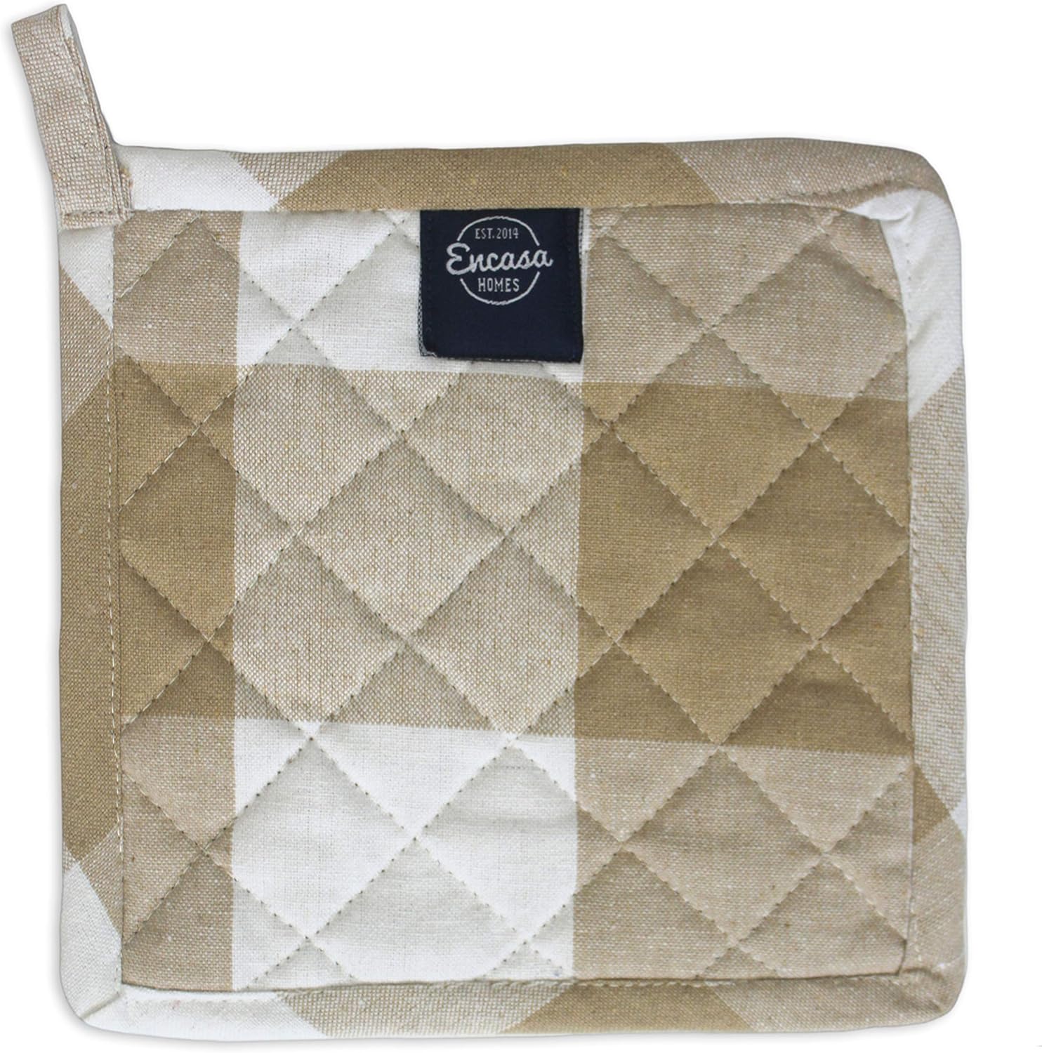 Encasa Homes 8 inches Oven Microwave Potholders (2 pc Set) for Kitchen Cooking & Baking - Heat Resistant, Thick & Safe, Protection of Hands from Hot Utensils - Buffalo Beige Checks