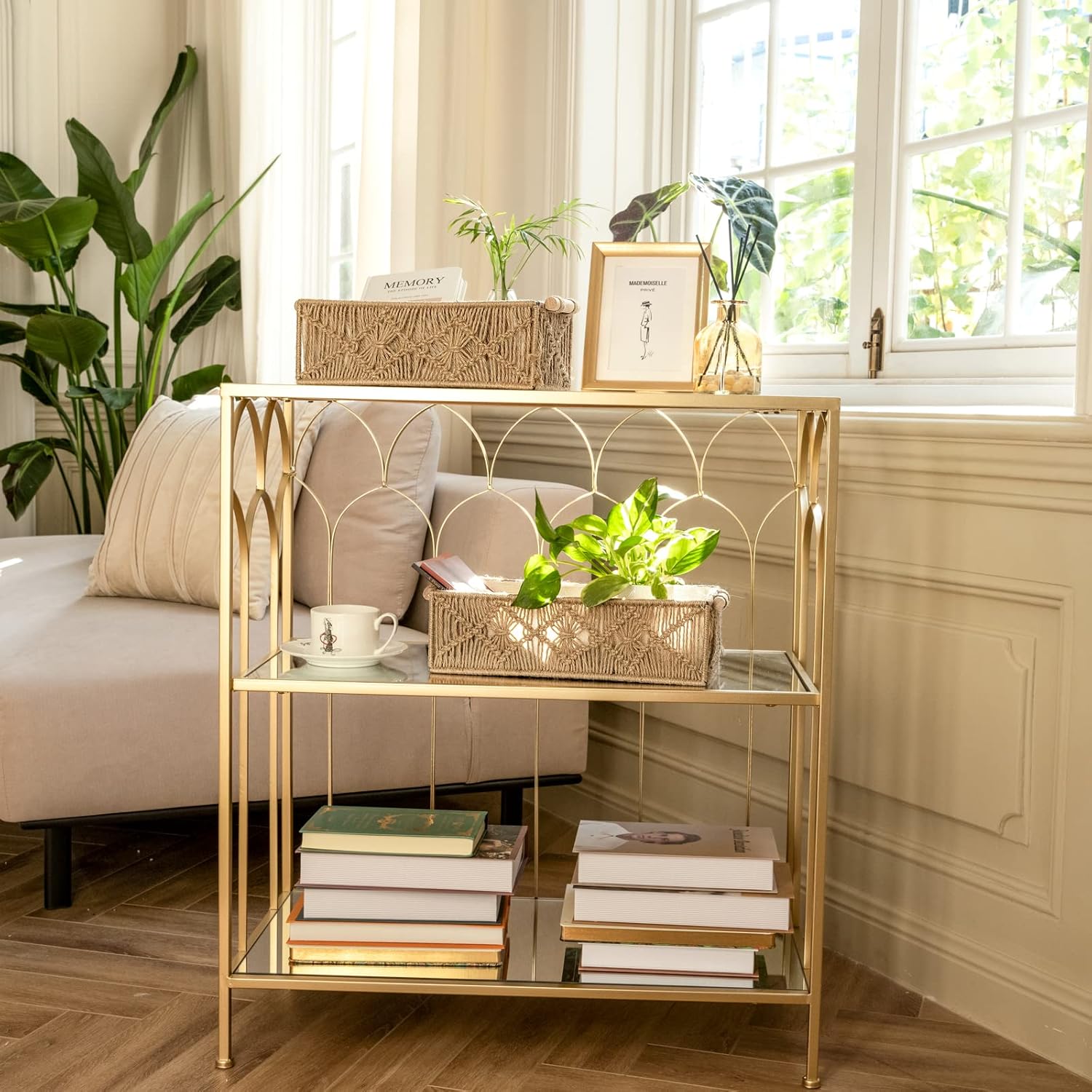 Mkono Macrame Storage Baskets Boho Decor Box Handmade Woven Decorative Countertop Toilet Tank Shelf Cabinet Organizer for Bedroom Livingroom Home, Set of 2, Brown