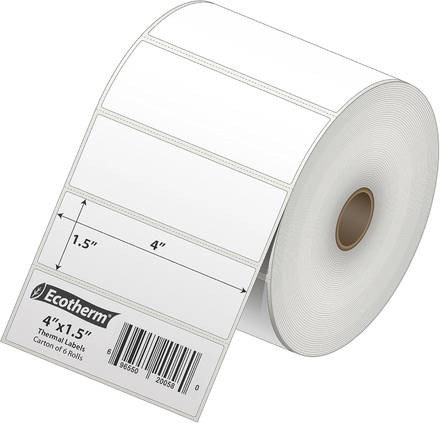 4" x 1.5" Thermal Labels | 6 Rolls | 10800 Labels | fits Zebra, Munbyn, Rollo, Godex, Arkscan, iDPRT, Offnova Thermal Label Printers and More | Blank White Adhesive Stickers by Ecotherm