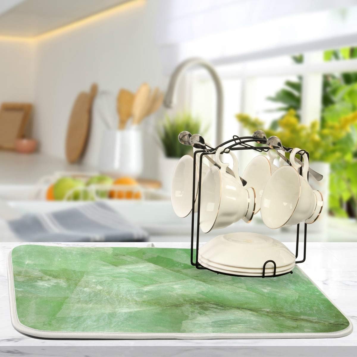 Super Absorbent Dish Drying Mat, Microfiber Fast-Drying Dish Mat, 24" x 18", Kitchen Dish Drying Pad (Green Jade Stone Marble)…
