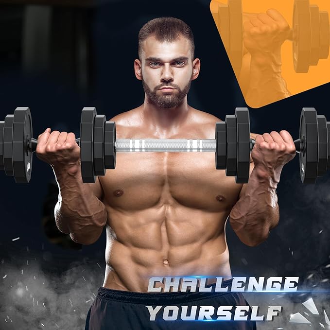 - Perfect for Strength Training: Not limited to workout equipment combinations, this dumbbell weights set comes with a connecting rod and can be assembled as a barbell to improve full-body muscle training. Adjustable design helps fitness enthusiasts increase their strength, burn fat, and shape their bodies.Dumbbells offers a better training way than other home gym equipment. Realize your home gym dreams with just a set of dumbbells. Perfect workout dumbbells gift for men and women.