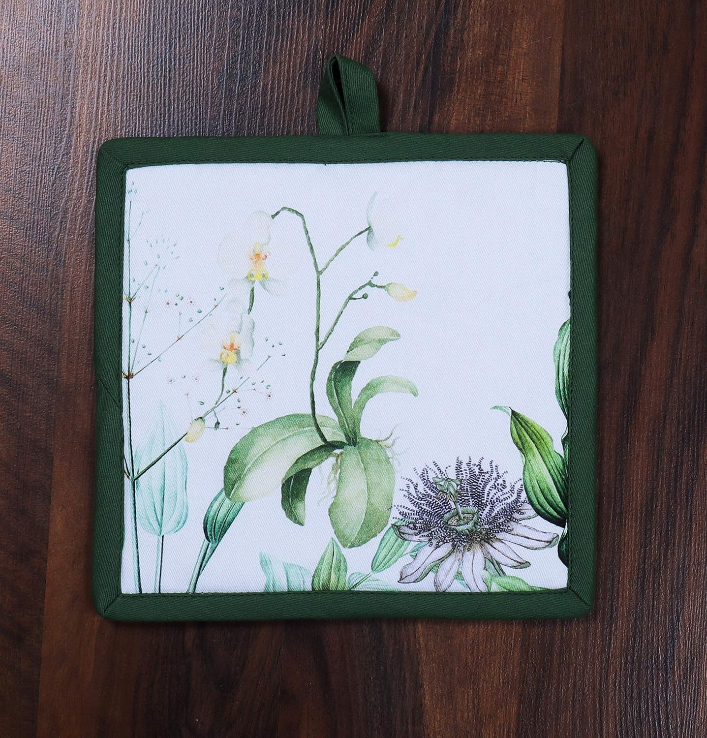 AMOUR INFINI Pot Holders Heat Resistant Cotton Set of 2 Nonslip 8"x8" Inch Hot Pads for Kitchen, BBQ, Baking & Cooking with Hanging Loops (Floral Shrubs)