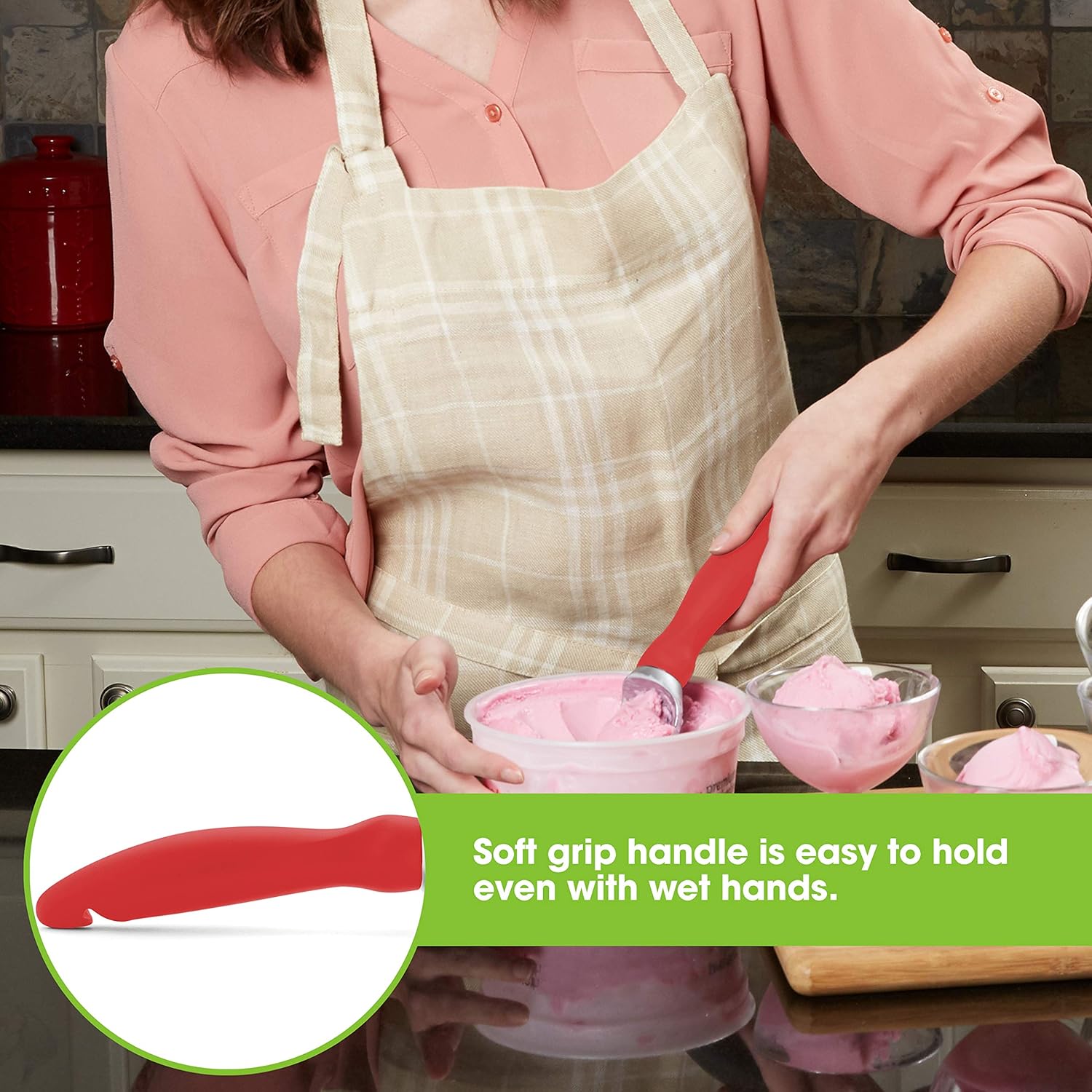 Spring Chef Red Heavy Duty Ice Cream Scoop - Stainless Steel Ice Cream Scooper with Non-Slip Handle - Premium Metal Kitchen Tool for Gelato, Sorbet, Melon - Dishwasher Safe Icecream Spoon