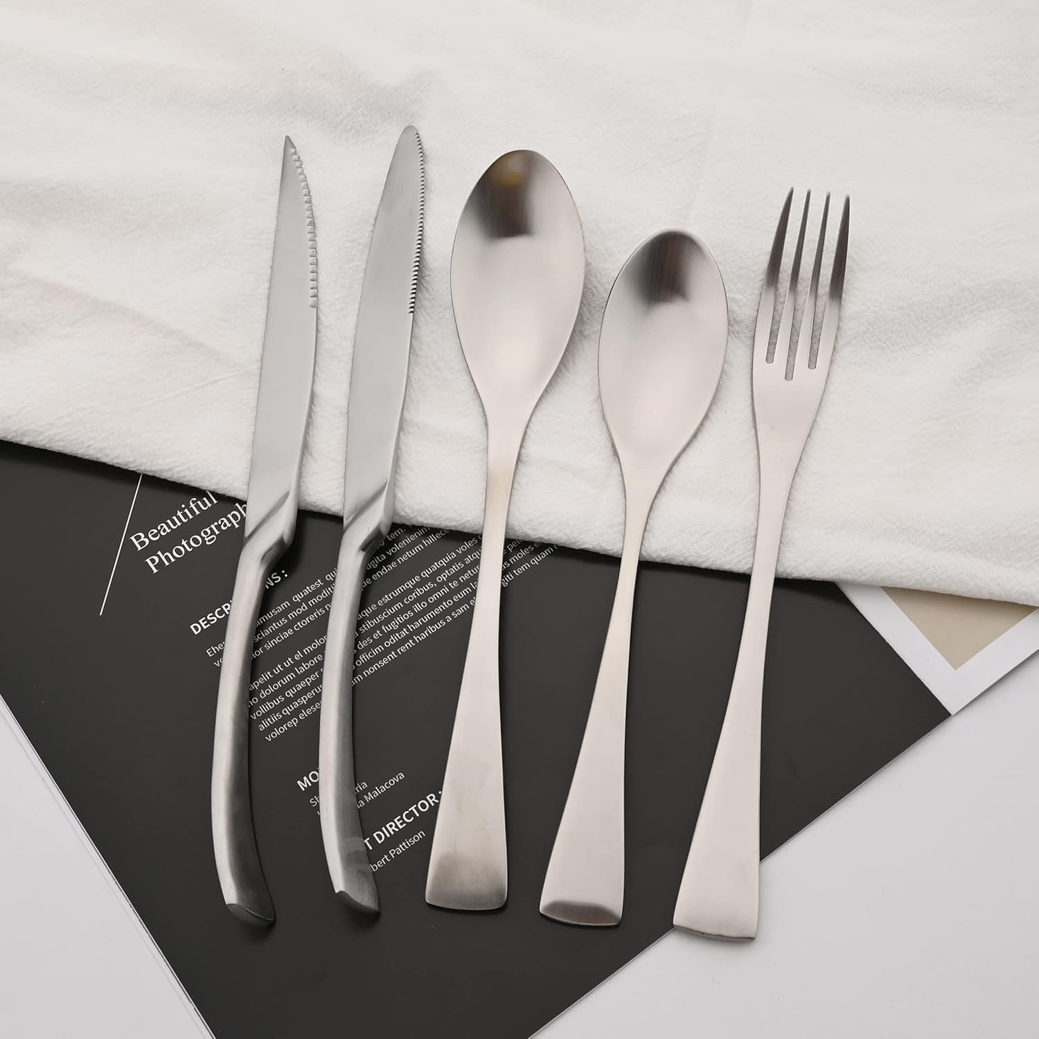 Luxury 304 Stainless Steel Matte Silver Cutlery Flatware Set - Utensil Set Steak Spoons and Forks Knife Silverware Set,Service for 4 (24-Piece)