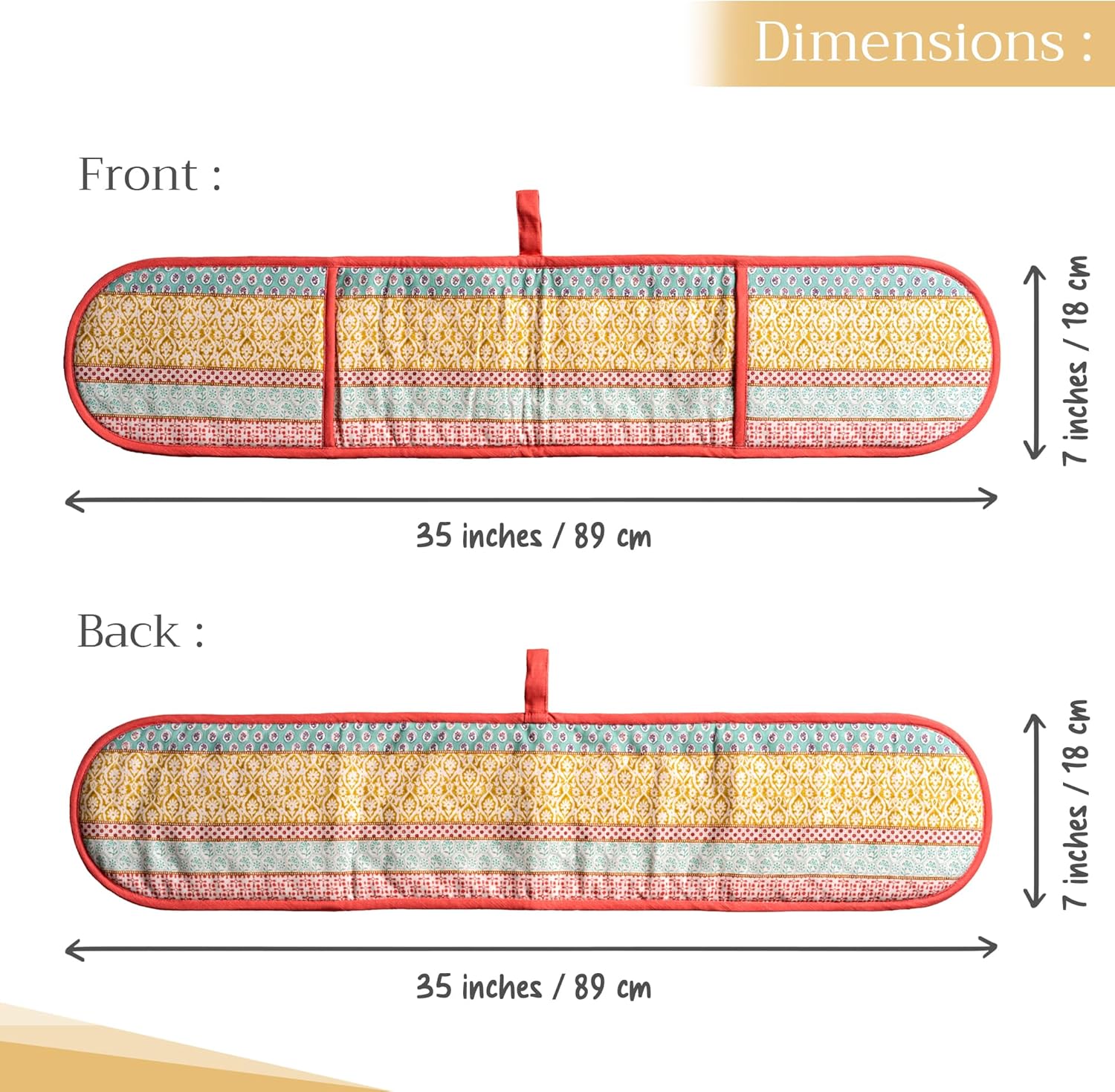 - Package includes: Includes 1 double oven mitt sized 7"x35". Perfect for handling hot cookware safely while adding a touch of European elegance to your kitchen. Designed in Europe and made in India with care