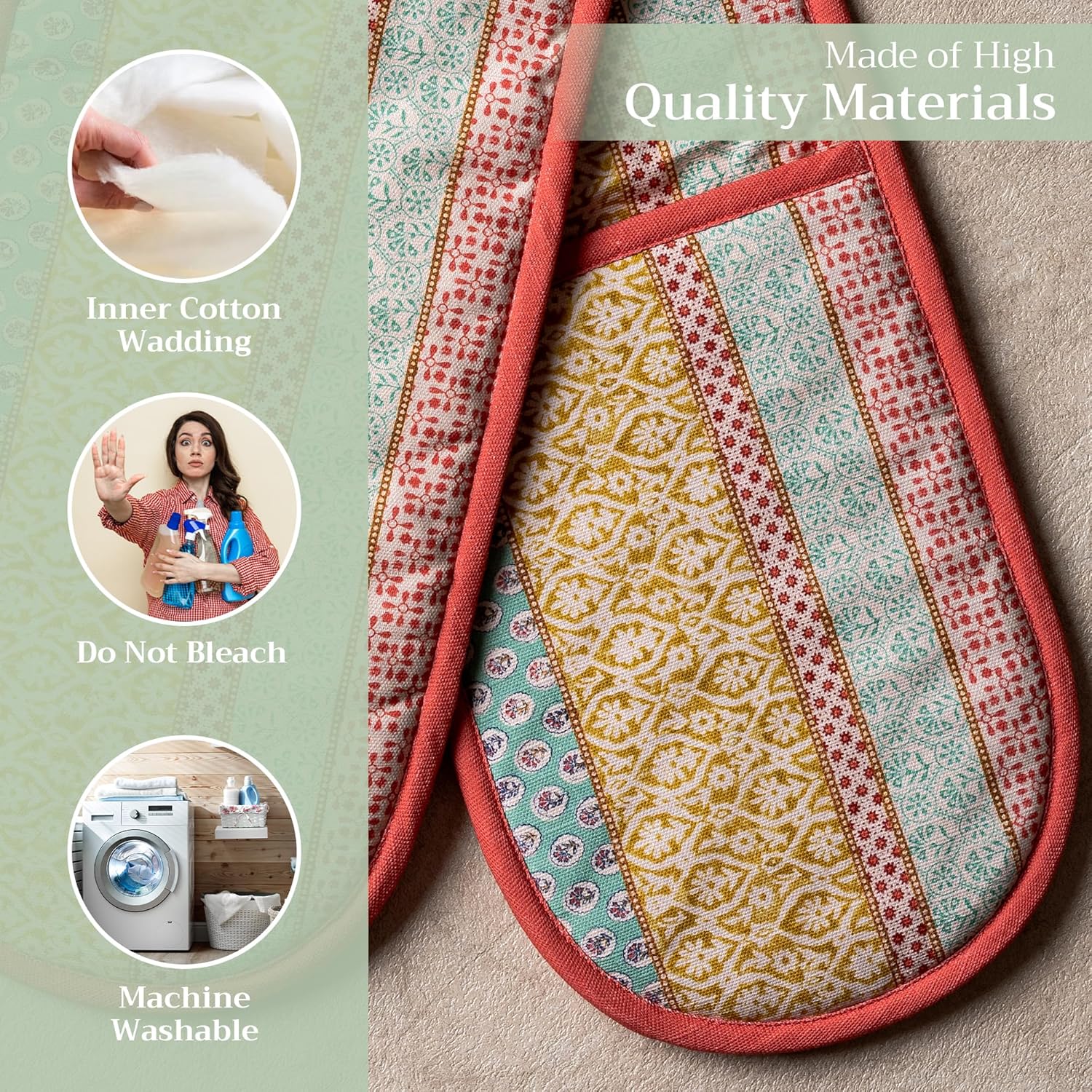 - 100% Quilted cotton: Crafted from premium quilted cotton for superior heat resistance and durability. This double oven mitt offers a soft, flexible grip and protects your hands during baking, roasting, or grilling