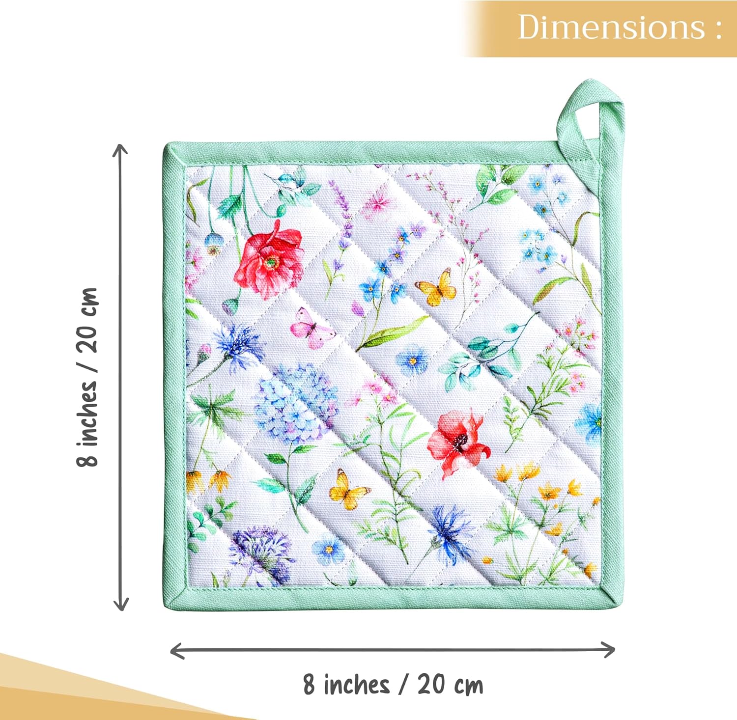 - 100% Quilted cotton: Made from premium quilted cotton, our pot holder ensures safe handling of hot pans or dishes. The soft, durable build provides excellent heat resistance and grip—perfect for everyday cooking and baking needs