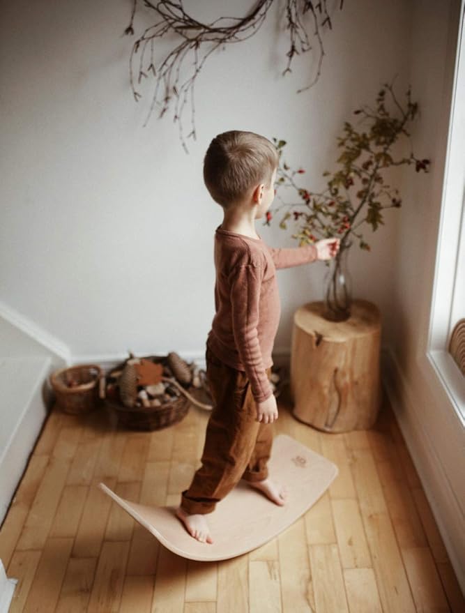 Kinderfeets, Kinderboard, Waldorf Original Wooden Balance Board for Toddlers, Kids, Teens, Adults -Wobble Balance Board - Kids Wooden Toys Learning Toys - Rocker Board Yoga and Exercise