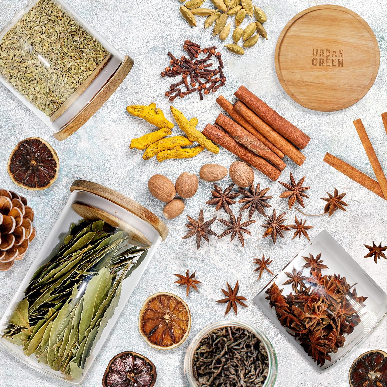 - ✅URBAN GREEN glass containers / Canisters are one time investment and lifetime of wear and team. User tips, Unlike Bamboo Lids, each piece of wood lid has its unique veins and colors, which is the beauty of the wood product.