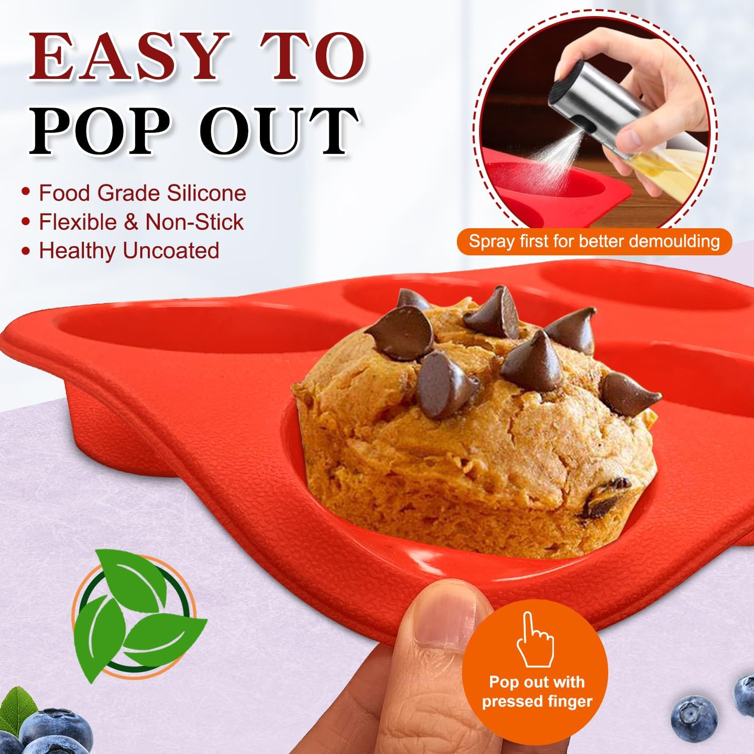 - EASY TO USE: Convenient to use and easy to remove, just pop out easily. Since the silicone muffin cup is made of flexible silicone for easy pop-out, please use a baking tray or baking sheet under silicone muffin pans before filling them for stability