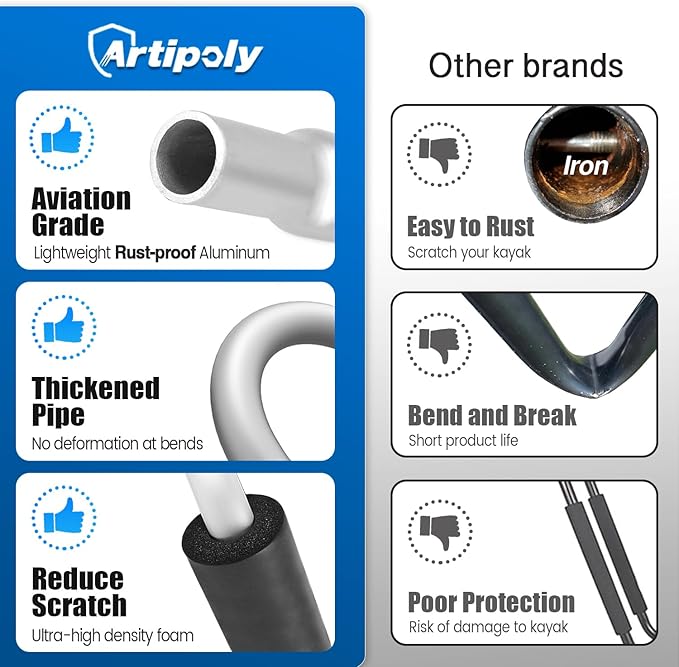 - Great Helper Brings Peace of Mind: Exquisite craftsmanship rubber pedal & foam protector, provide maximum protection for kayaks, canoes and stand-up paddle boards, also keep your roof cross-bar from scratching. Ultra-high density foam can reduce the friction between the kayak and the rack, and also protect the hull finish during transport.