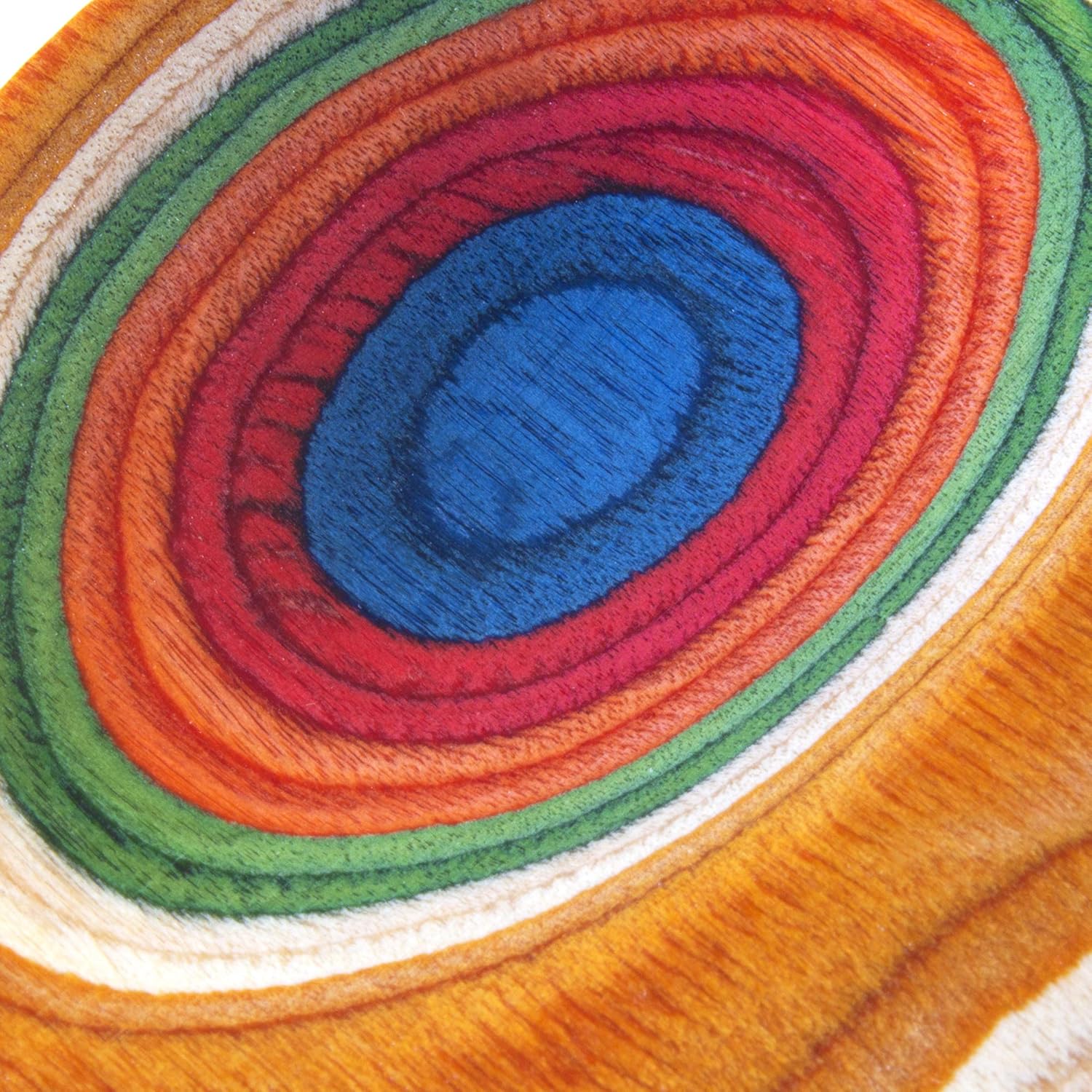 - Masterfully crafted from layers of colored birch wood to create a brilliant array of colors