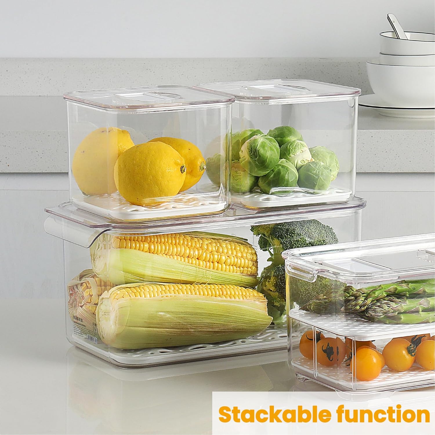 - 【Keep Fruits & Vegetables Fresh】These storage containers come with lids featuring adjustable vents that regulate airflow and humidity, helping to keep fruits and vegetables fresh in the refrigerator for up to 1–2 weeks.