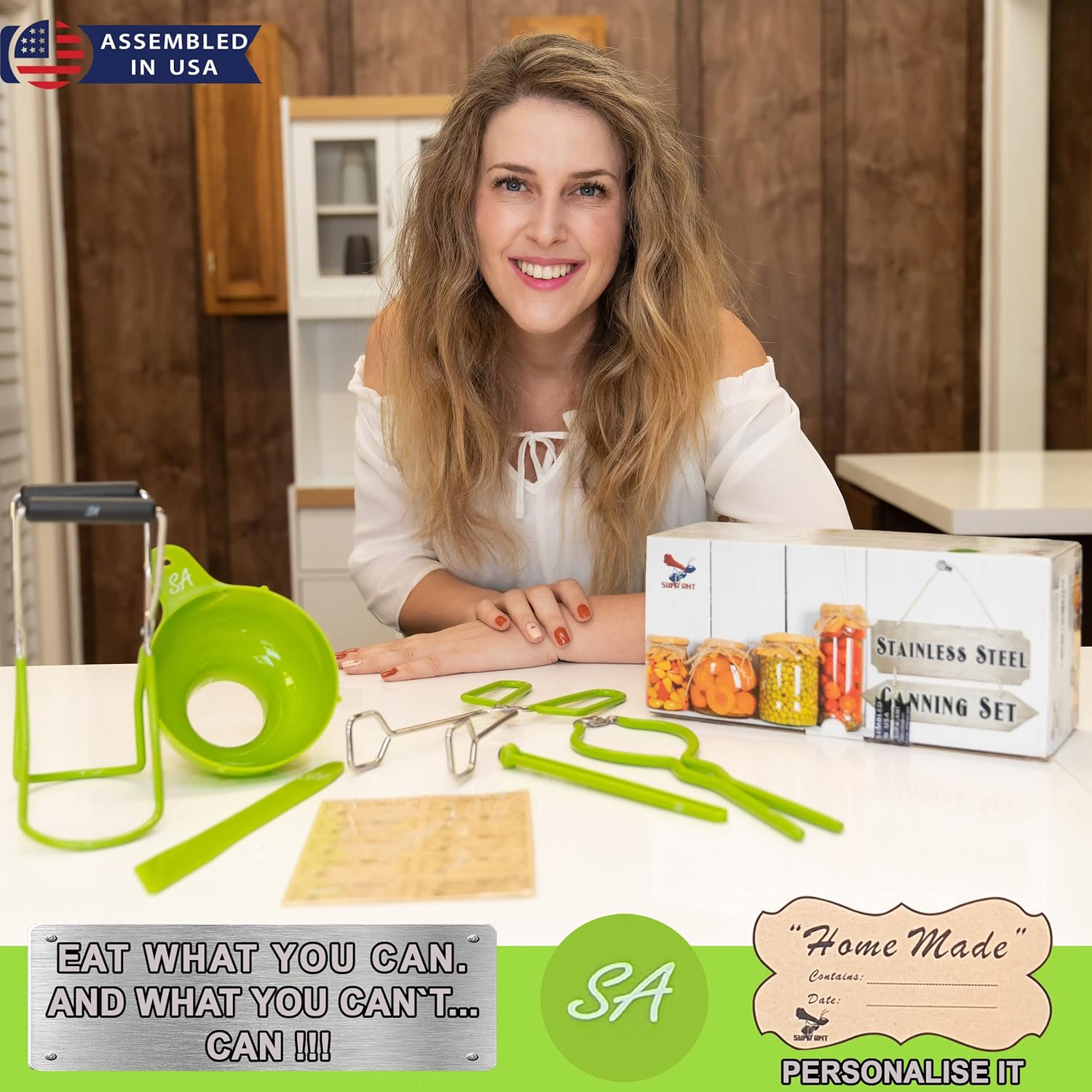 Supa Ant Canning Supplies - USA Assembled & Certified Food Grade Stainless Steel Starter Set Canning Kit for Beginners - Wide Kitchen Funnel, Jar Lifter and Wrench, Bubble Popper/Measurer, Lid Lifter