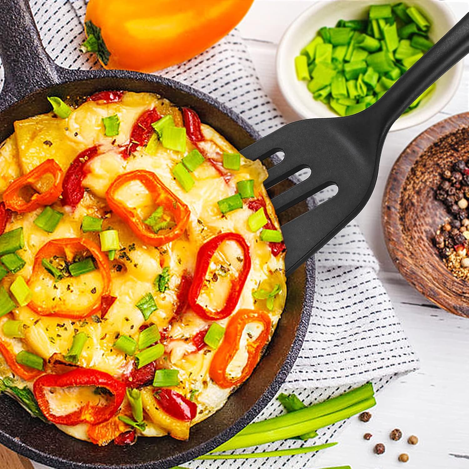 - Non-Stick and Protect Your Pot : Our soft slotted flipper turner is designed for noiseless cooking and won’t scratch the surface of your coated, non-stick or metal cookware;Perfect for baking, frying, flipping or serving food