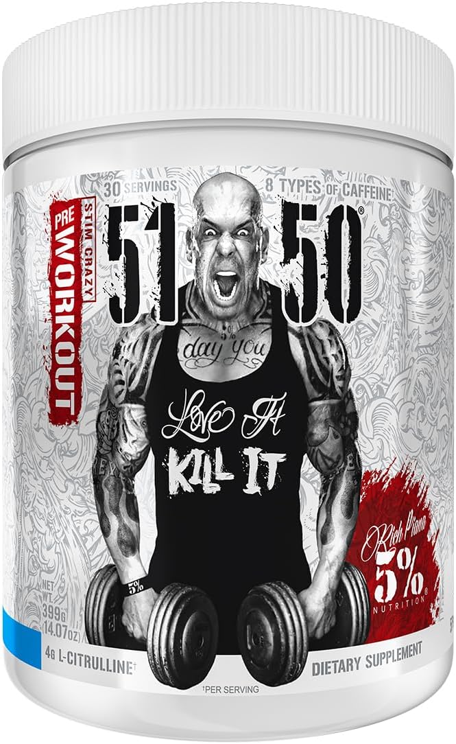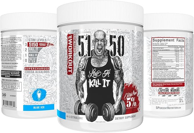 5% Nutrition Rich Piana 5150 High Stim Pre-Workout Powder | Extreme Energy, Focus, Pumps & Endurance | 400 mg Caffeine, Citrulline, Beta Alanine, N-Acetyl L-Tyrosine | 30 Srvgs (Blue Ice)