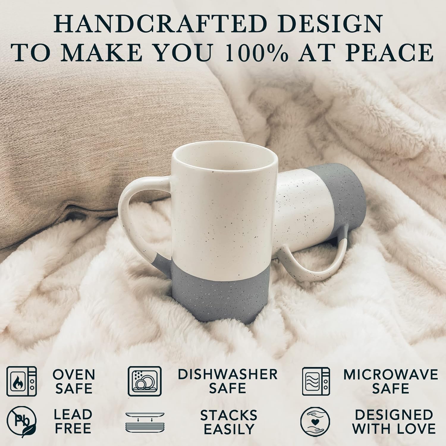 Mora Ceramics 12oz Coffee Mug Set of 4 - Ceramic Tea Cups with Handle - Microwave and Dishwasher Safe, Perfect For Cup or Mug Lovers - Rustic Matte Glaze, Modern Design Mugs - Flint