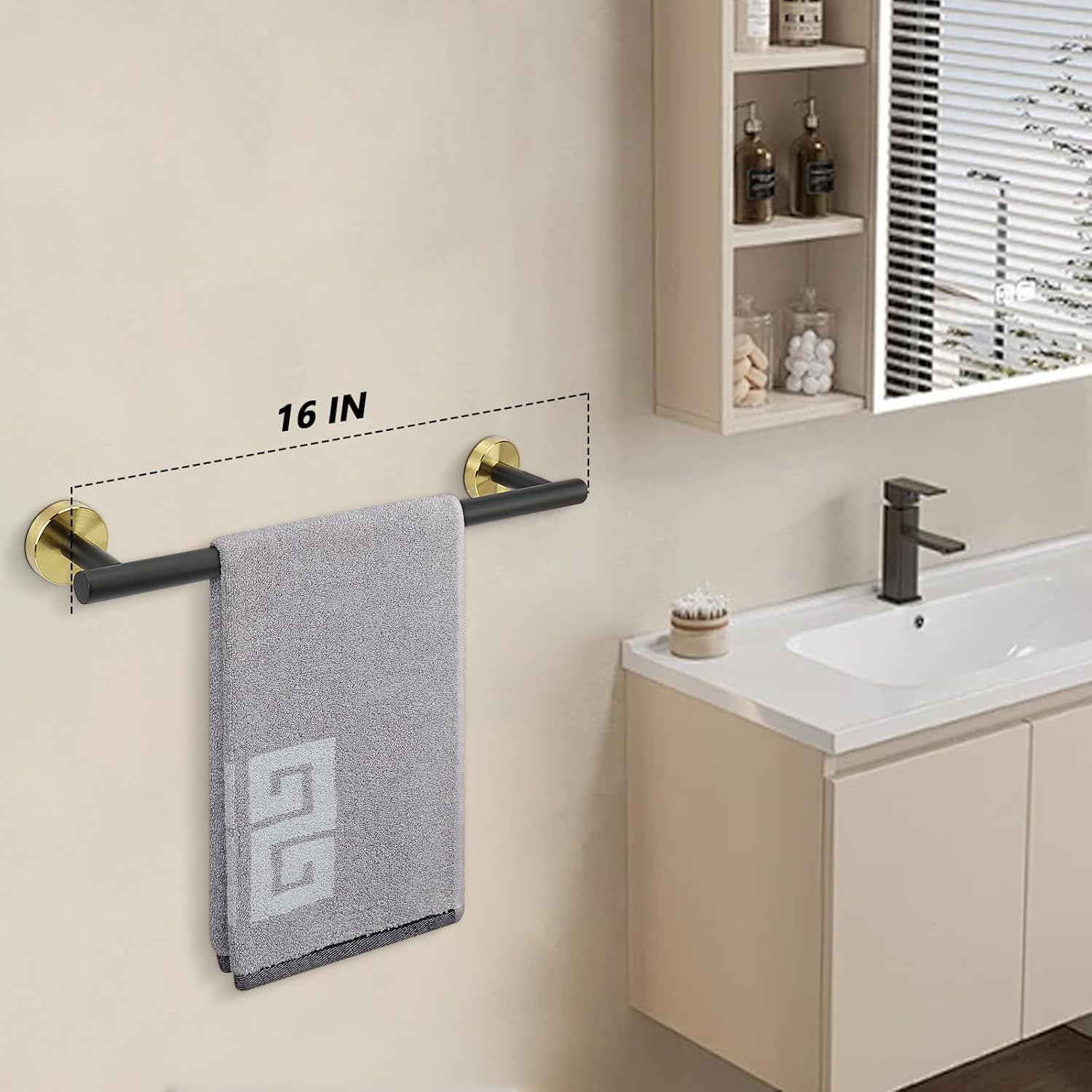 NearMoon Bath Towel Bar, Bath Accessories Thicken Stainless Steel Shower Towel Rack for Bathroom, Towel Holder Wall Mounted (1 Pack, Matte Black & Gold, 16 Inch)