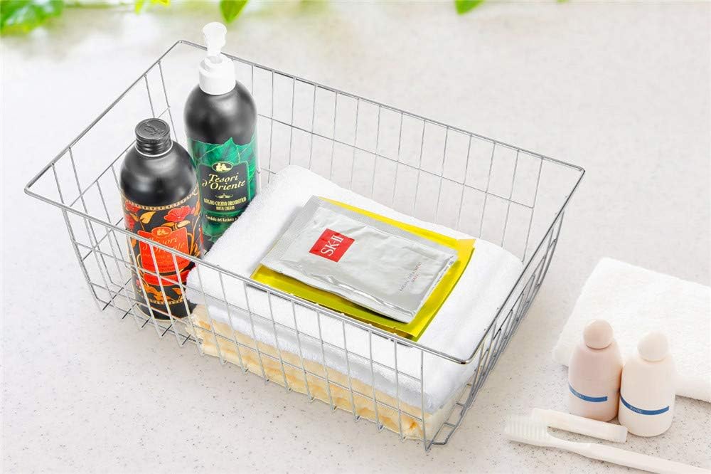 SANNO Freezer Baskets for Storage Pantry Large Metal Wire Food Storage Organizer Bin Basket with Handles - for Kitchen Cabinets, Pantry, Bathroom, Laundry Room, Closets, Garage - Chrome,2 pack
