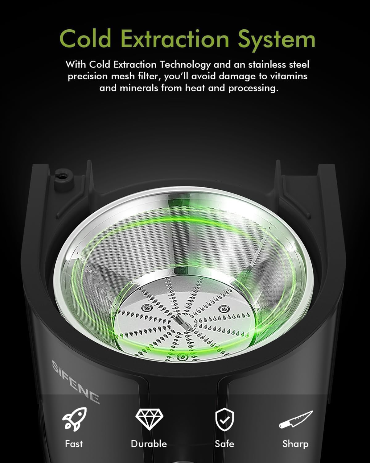 - SAFETY AND OVERHEAT PROTECTION — Designed with safety in mind, the juicer only operates when properly locked. It also features an overload protection system that automatically shuts off if overheating occurs due to power surges, incorrect assembly, or overuse
