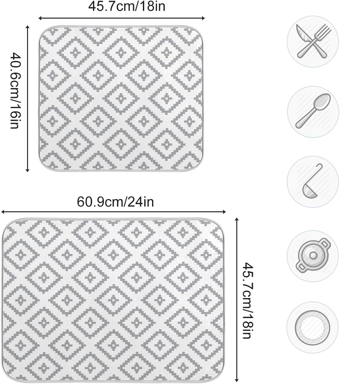 Super Absorbent Dish Drying Mat, Microfiber Fast-Drying Dish Mat, 24" x 18, Kitchen Dish Drying Pad, White Moroccan Rhombus Plaid