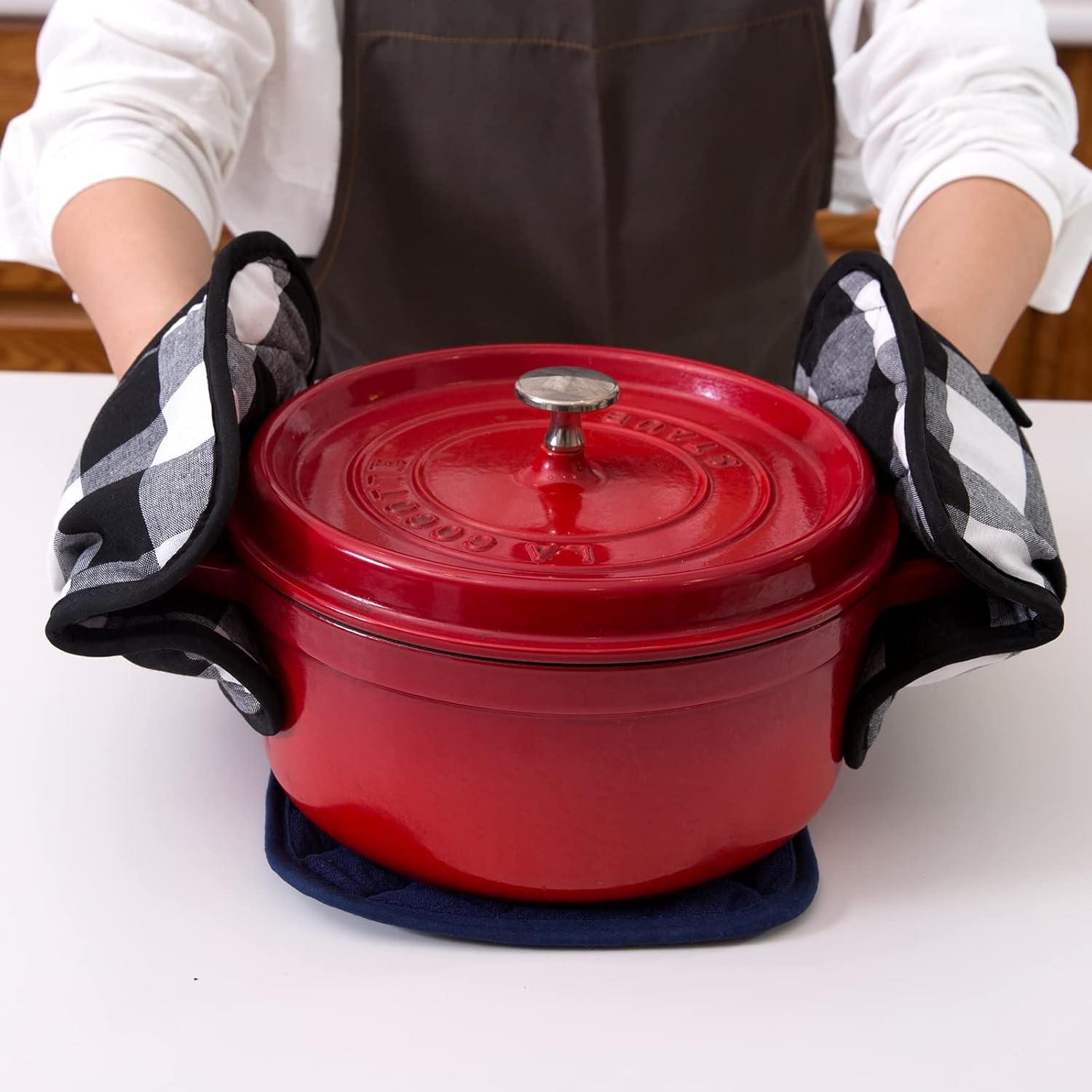 - PROTECT YOU FROM HEAT - The construction of these pot holders for kitchen helps to protect your hands and arms from the heat of the oven. Do not use pot holders in a hot oven or over an open flame.