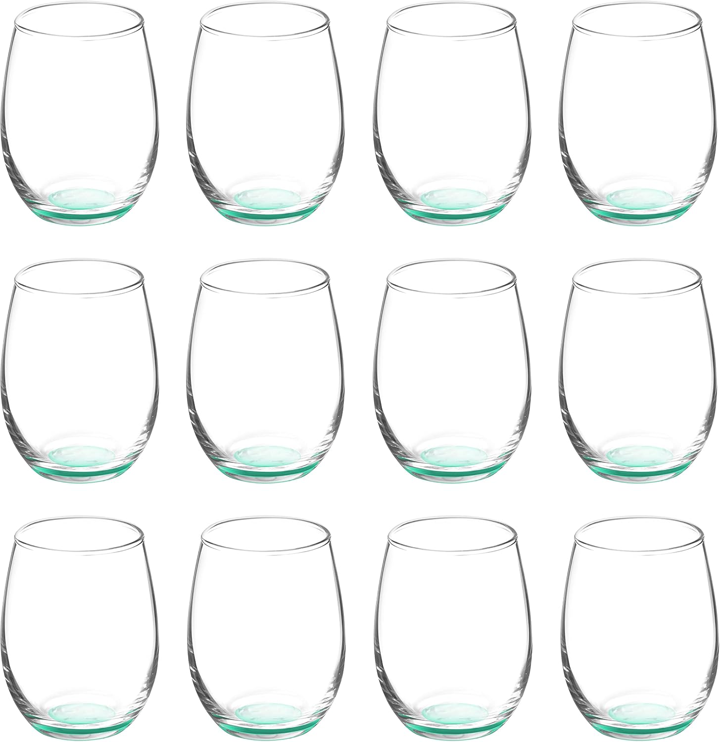 DISCOUNT PROMOS Stemless Wine Glasses by ARC 5.5 oz. Set of 12, Bulk Pack - Perfect for Hotel, Bar, Restaurant or Lounge - Green