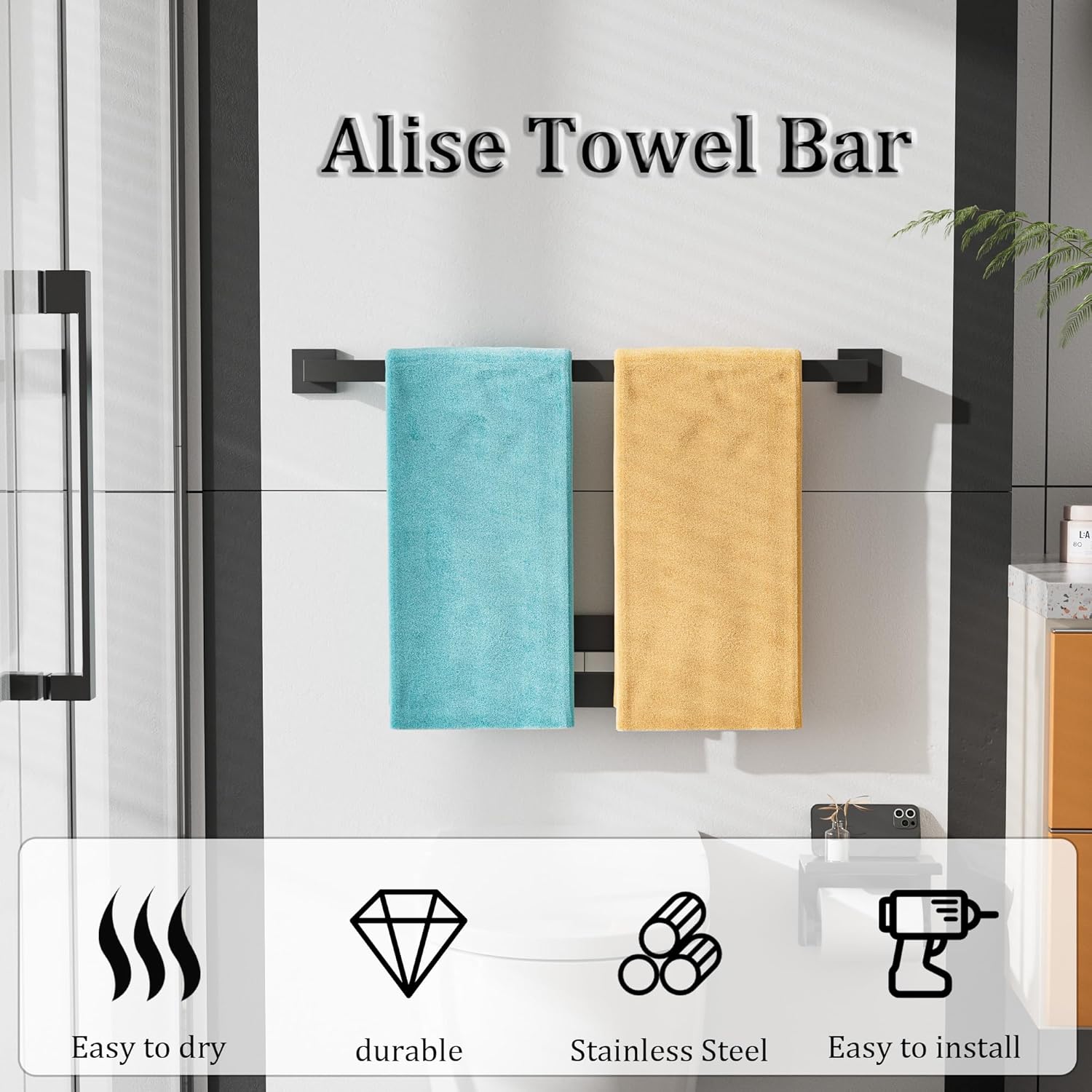 Alise Black Towel Bars,27.56 Inch Towel Holder Towel Racks for Bathroom and Lavatory,SUS304 Stainless Steel Hand Towel Hanger Rail Wall Mount,Useable Length 25.79 Inch Towel Bar, GYT070-B