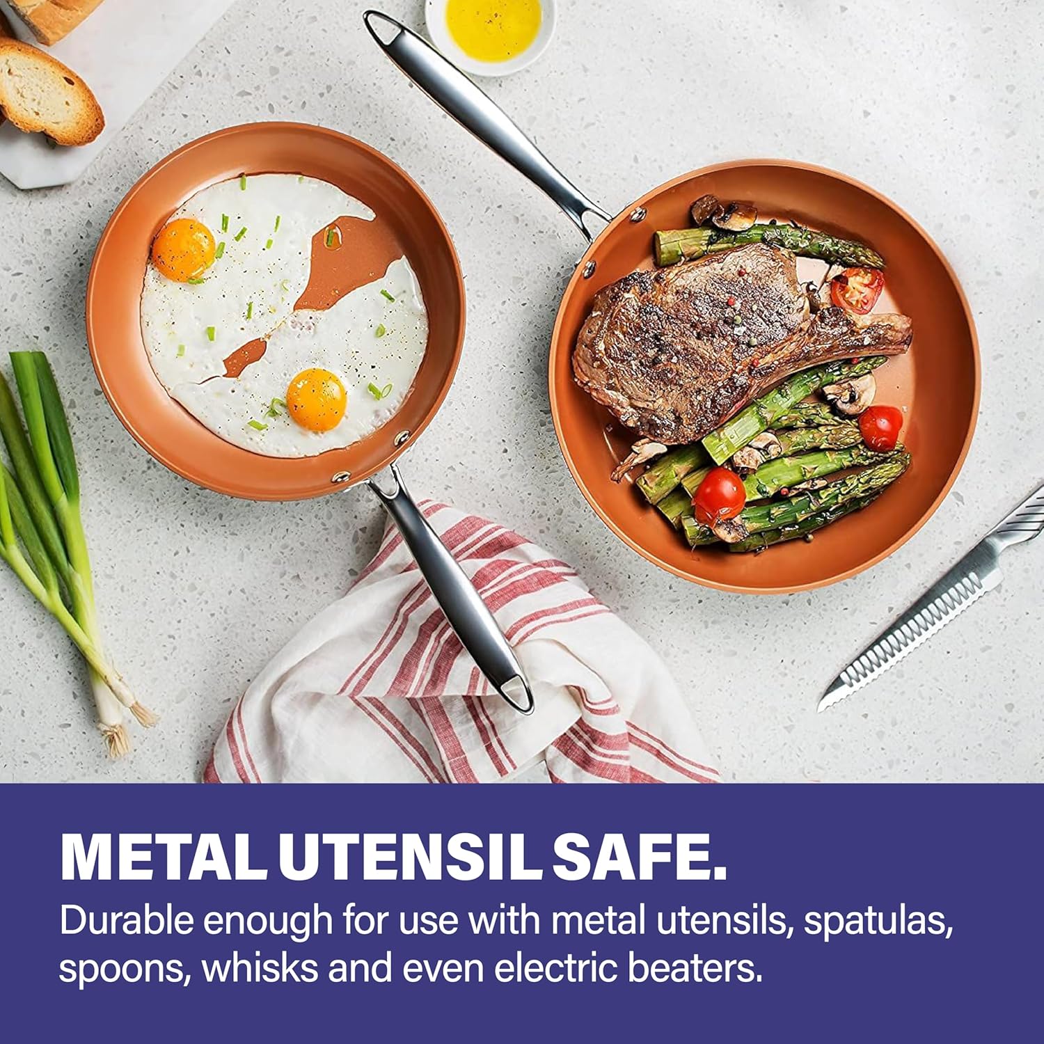 - SUPER DURABLE – the coating of the pan is durable enough to withstand metal utensils, spatulas, spoons, whisks and even electric beaters while delivering years of outstanding, nonstick use