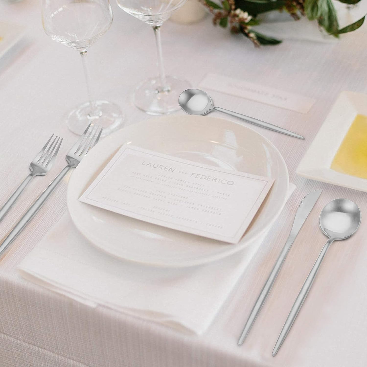 - DISHWASHER SAFE :This silverware is easy to clean and dishwasher safe.Your good care can make the knives,forks and spoons silverware still look as same as new