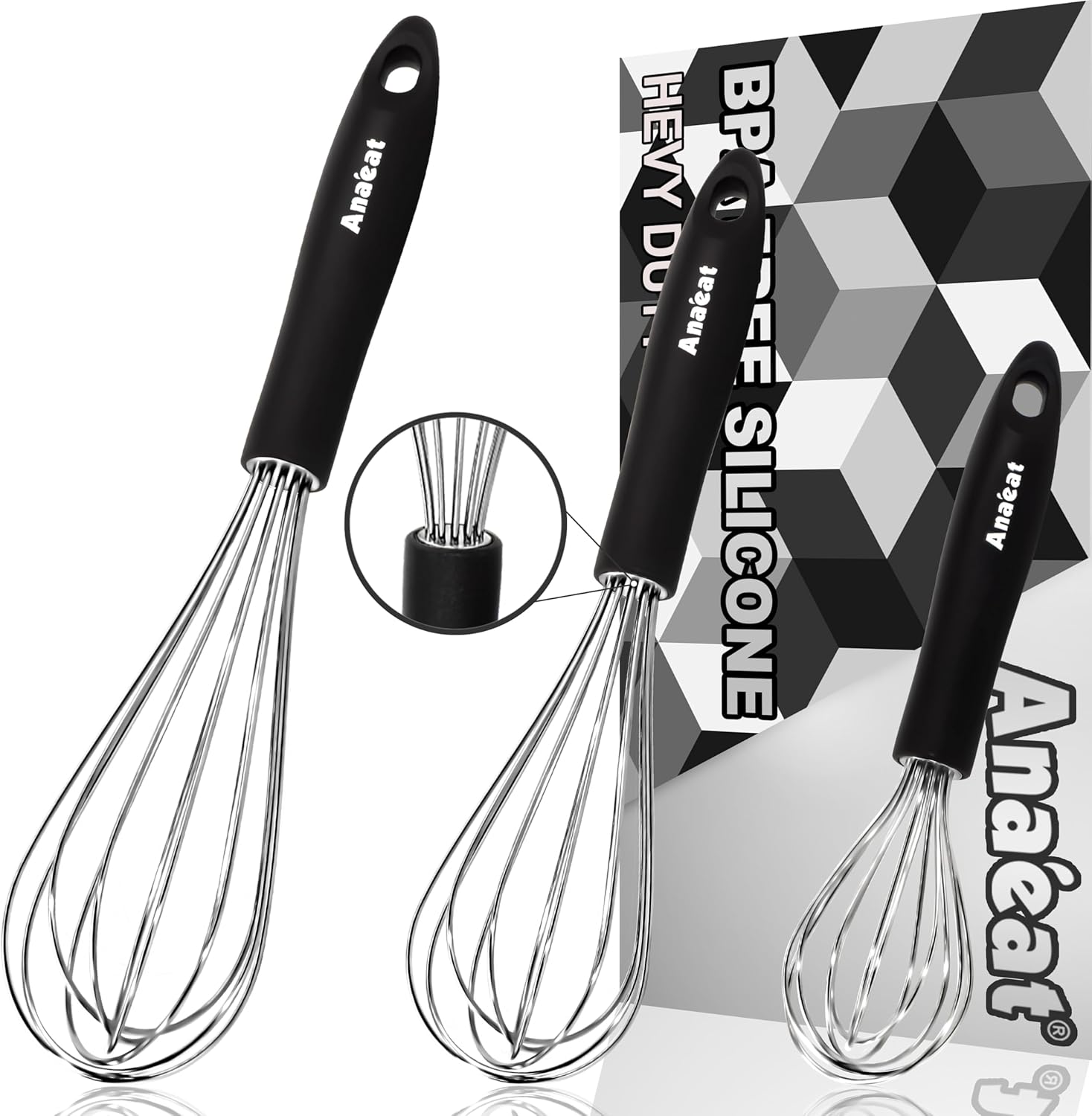 - 【BRAND QUALITY GUARANTEE】QUALITY CAN SPEAK ITSELF. Anaeat focuses on kitchenware research and development. We are so confident that we have the best Stainless Steel whisk set on the market. If you have any problems with Anaeat products, feel free to send us a message by Amazon and we resend to you right away for free, or full money back. We are very concerned about every order, and try our best to Provide our customers with HEALTHY & DURABLE kitchen accessories.