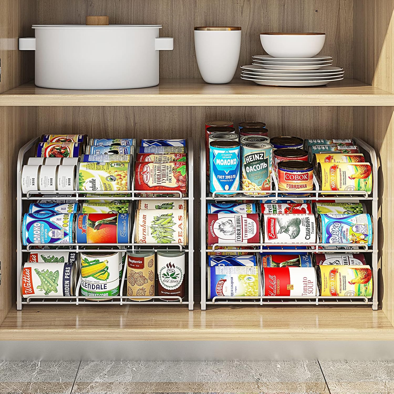 AIYAKA Can Rack Organizer, 3 Tier Stackable Can Storage Dispenser–12.2" D x 16.6" W x 14.5" H,for Food Storage, Kitchen Cabinets or Pantry, Storage for 36 Cans, Silver