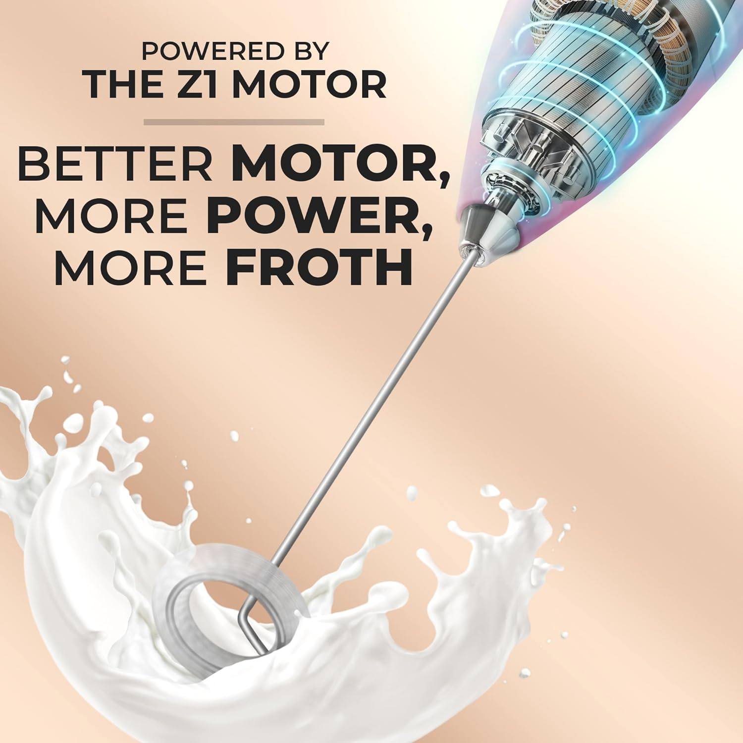 Zulay Powerful Milk Frother Handheld Foam Maker for Lattes - Whisk Drink Mixer for Coffee, Mini Foamer for Cappuccino, Frappe, Matcha, Hot Chocolate by Milk Boss (Bubblegum)