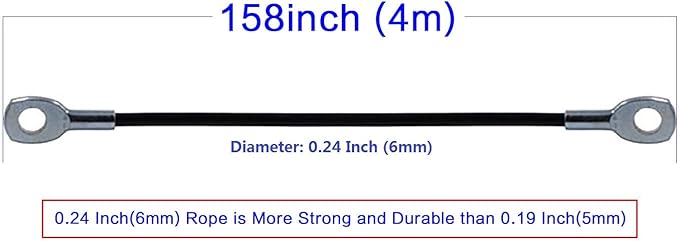 - Specification: This wire rope diameter 0.24inch/6mm including the black PU coating. It is more strong than 5mm. Made of high-strength PU materal + steel wire.