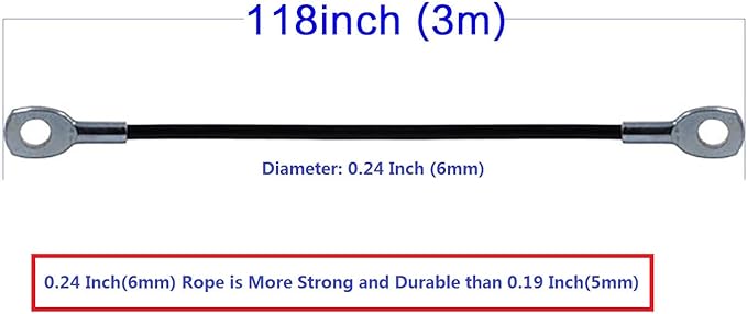 • Specification: This wire rope diameter 0.24inch/6mm including the black PU coating. It is more strong than 5mm. Made of high-strength PU materal + steel wire.