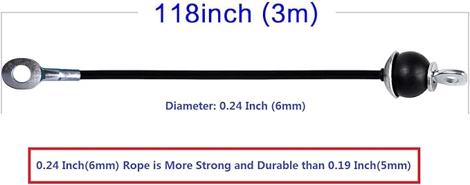 • Specification: This wire rope diameter 0.24inch/6mm including the black PU coating. It is more strong than 5mm. Made of high-strength PU materal + steel wire.