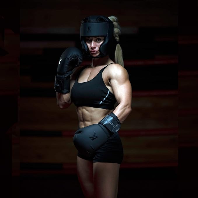 Kruzak Matte Black Boxing Gloves and Pads, Boxing Gloves Training Set for Kickboxing and Muay Thai MMA Training - Boxing Kit for Adults with Punching Pads for Martial Arts and Karate