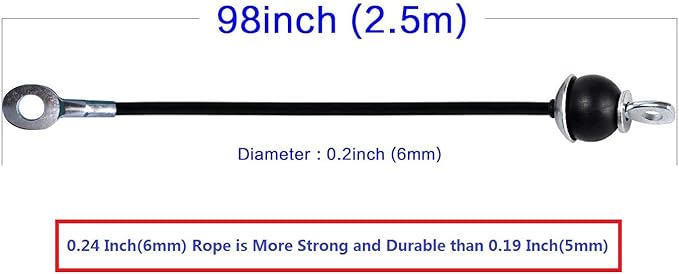 • Specification: This wire rope diameter 0.24inch/6mm including the black PU coating. It is more strong than 5mm. Made of high-strength PU materal + steel wire.