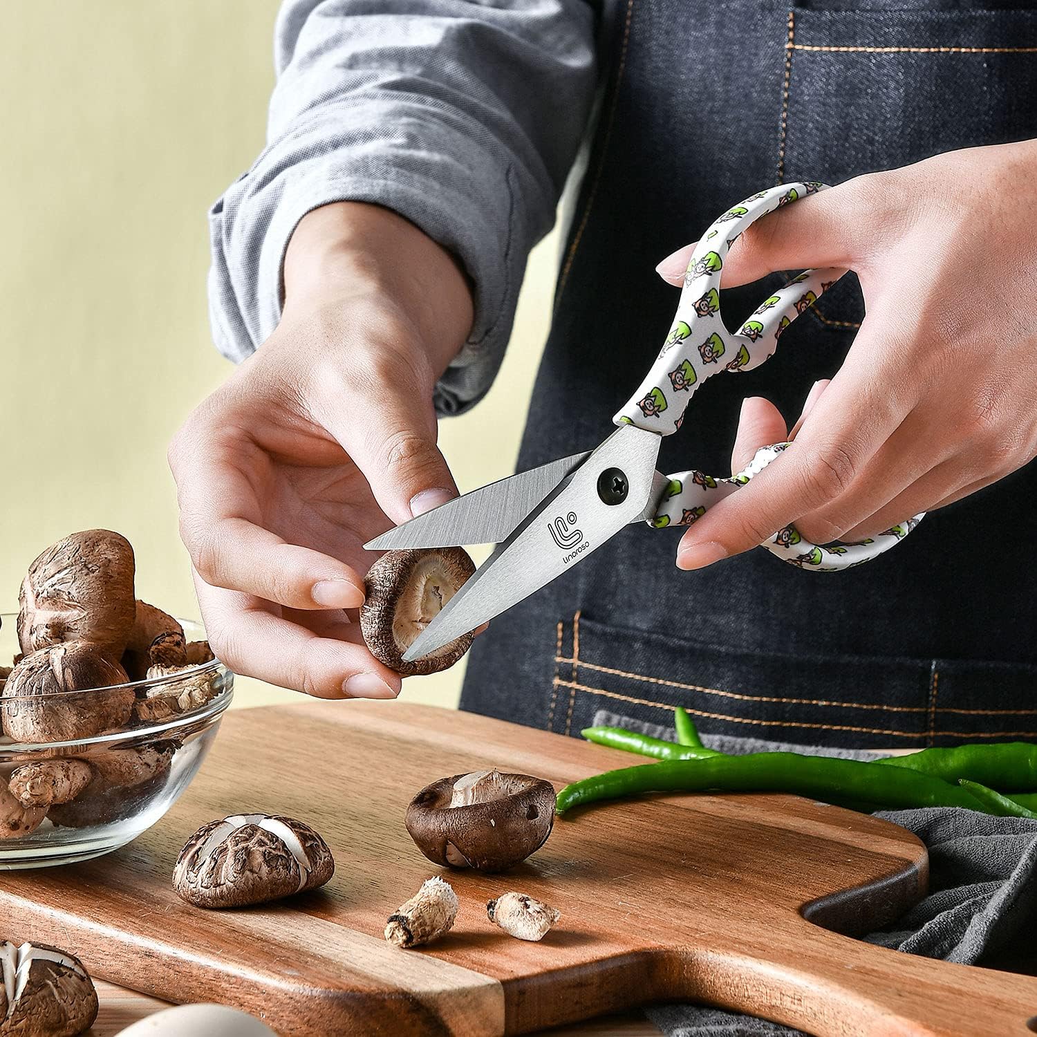 - Kitchen Scissors All Purose: Magnetic food scissors adapt to all kinds of kitchen works, Sharp and precise cutting for any foods, great as meat scissors; herb scissors; food scissors; pizza scissors; poultry shears and salad scissors. Of course, the blades are very easy to clean, safer and more hygienic and healthy. This kitchen scissors heavy duty will help you stay away from any kitchen mess and be your right-hand man. WARM TIP: Our white series scissors are non-detachable one-piece scissors