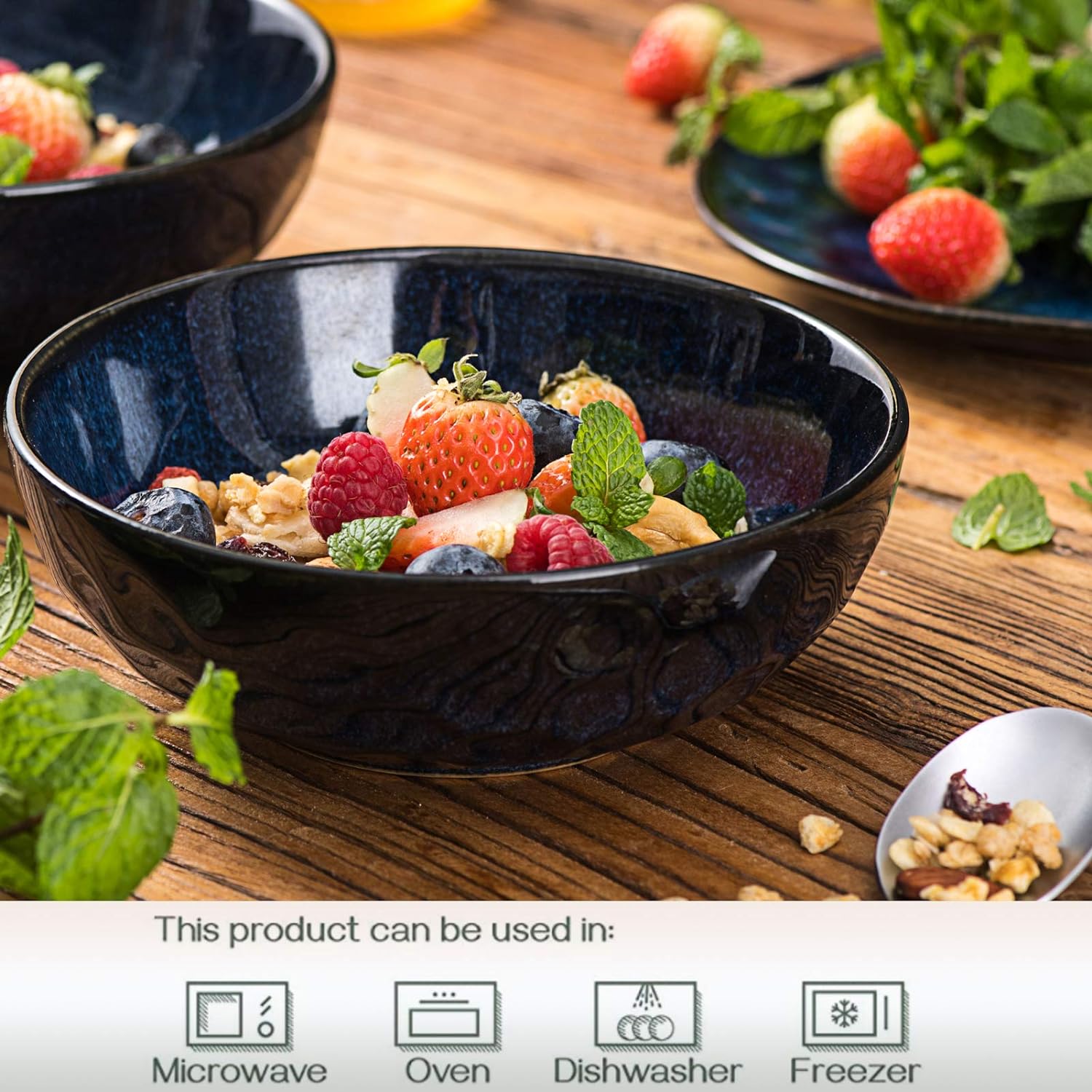 vicrays Ceramic Salad Bowls Set for Kitchen, Serving - 32 Ounce Soup Bowls, Pasta Bowls, Chip Resistant, Dishwasher Microwave Safe, Large, Fluted, stoneware, Set of 6 (Blue)