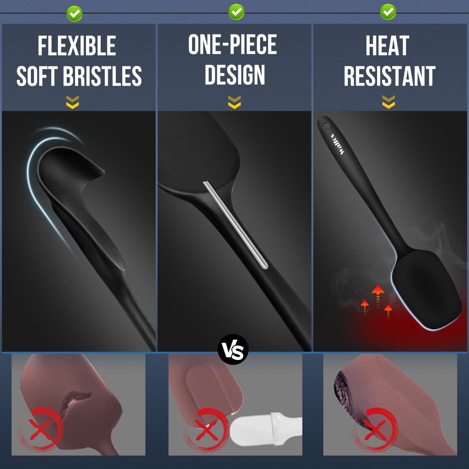 - 【600°F Highly Heat Resistant,BPA Free!】WALFOs spatulas are made of premium food grade silicone, BPA Free, 600°F Heat Resistant,Non-stick surface,Whether cooking,Bake Royal,scraping, decorating or mixing use walfos spatula, which are are safe, good for your health and easy on all of your cookware.