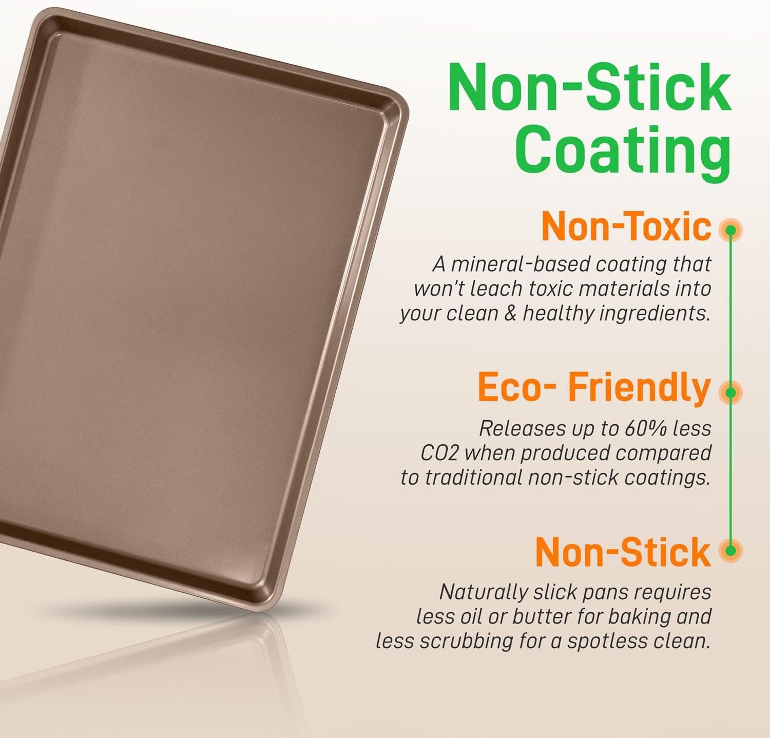 - NON-STICK COATING: The cooking sheet pan features a non-stick coated layer surface that ensures quick, effortless food release and eliminates the need for butter, oil, or cooking spray. Makes tasty homemade baked goods slide out easily