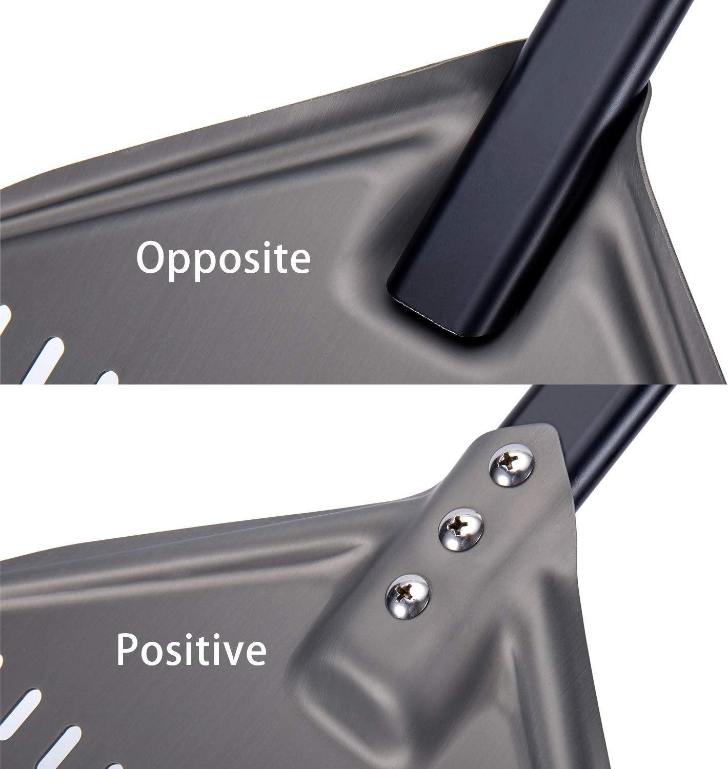 - ENSURE STABILITY: This aluminium pizza paddle equipped with 11 inches extended length handle. The handle riveted joints enhance its durability. suitable for large outdoor pizza ovens and kitchen ovens. Hand wash is recommended.