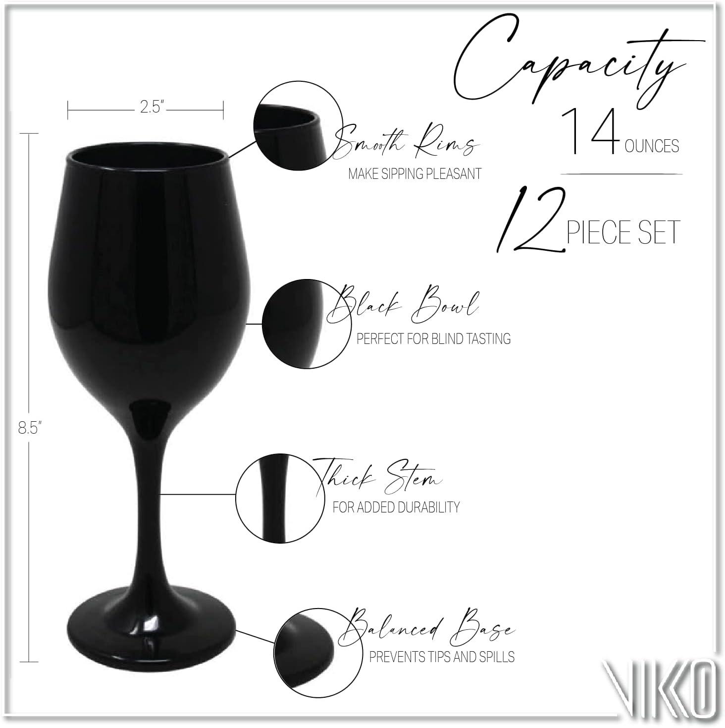 Vikko Black Wine Glasses Set of 6 Glasses Drinking Set Wine Glass, 14 Oz Glass Cup Set With Stem For Red And White Wine, Thick And Durable Wine Glass, Dishwasher Safe