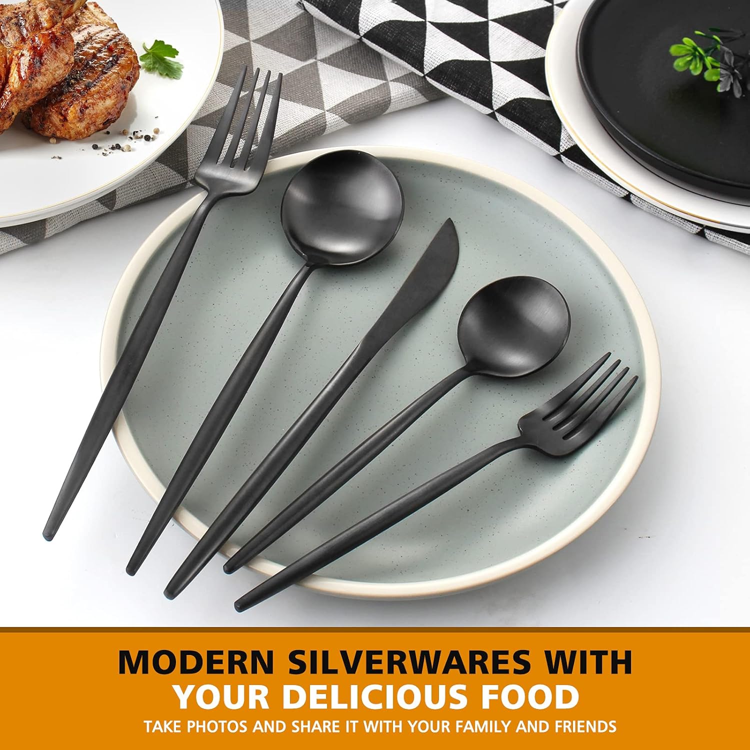 - DISHWASHER SAFE :This black silverware is easy to clean and dishwasher safe.Your good care can make the knives,forks and spoons silverware still look as same as new