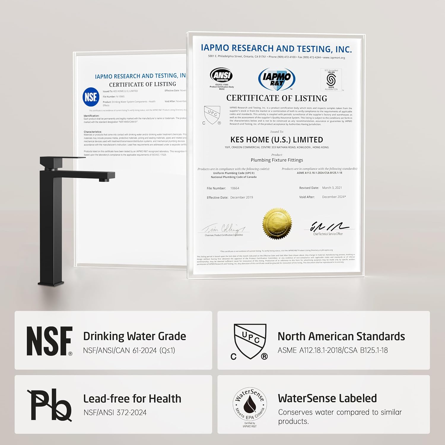 - [ Lead Free NSF Certified ] KES tall bathroom faucet is NSF and cUPC certified, compliant with no-lead requirements and California (CEC) Standards.