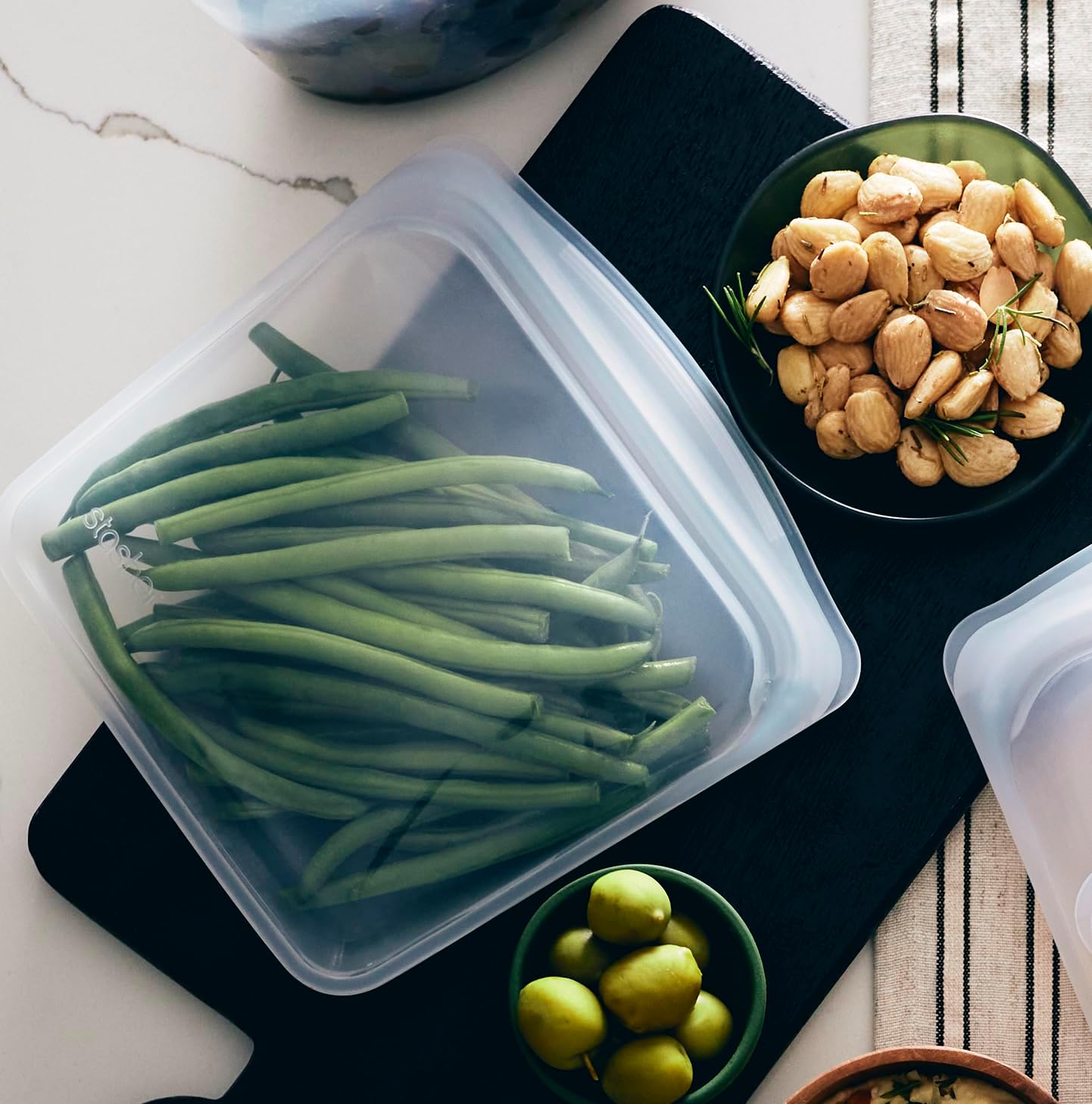 - REUSABLE, REWASHABLE CONTAINERS: Stasher silicone reusable storage bags make it easy to ditch single-use plastic and meet endless household needs. Safe for the dishwasher, microwave, oven (up to 425°F), and more.
