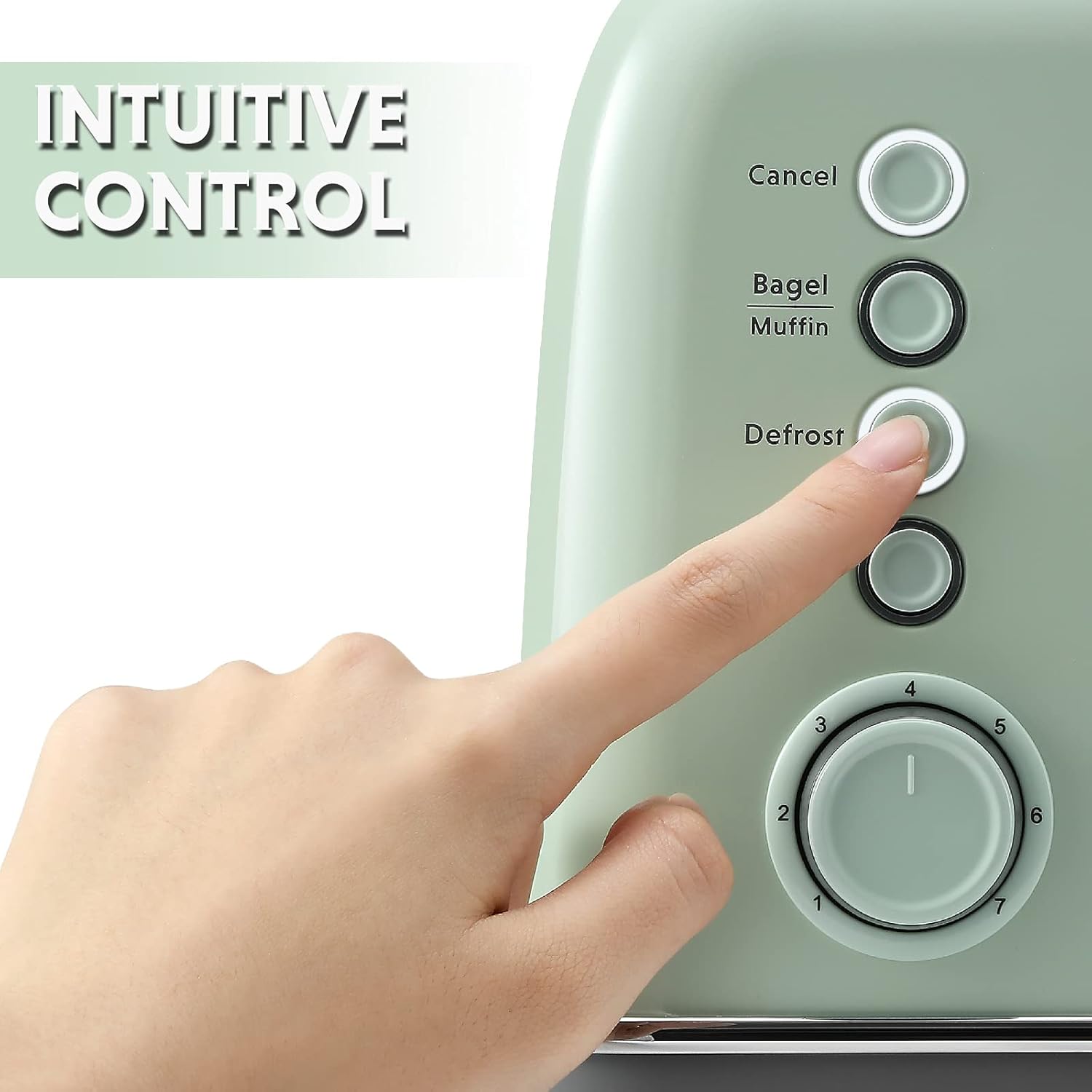 BUYDEEM DT620 2-Slice Toaster, Extra Wide Slots, Retro Stainless Steel with High Lift Lever, Bagel and Muffin Function, Removal Crumb Tray, 7-Shade Settings,Cozy Greenish